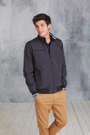 100% polyamide ottoman Taslan. Doublure filet 100% polyester. Tissu résistant et mat. 2 poches zippées devant. 1 poche zippée poitrine. 1 poche intérieure. Intérieur col en bord-côte avec rayures contrastées. Doublure filet. Bas de vêtement en bord-côte uni. Bas de manches en bord-côte avec rayures contrastées. Zip pour la personnalisation.