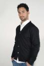 50% polyester / 25% coton ringspun peigné et 25% rayon. Cardigan col V manches longues matière mélange \"Triblend\". 5 boutons et 2 poches avant.